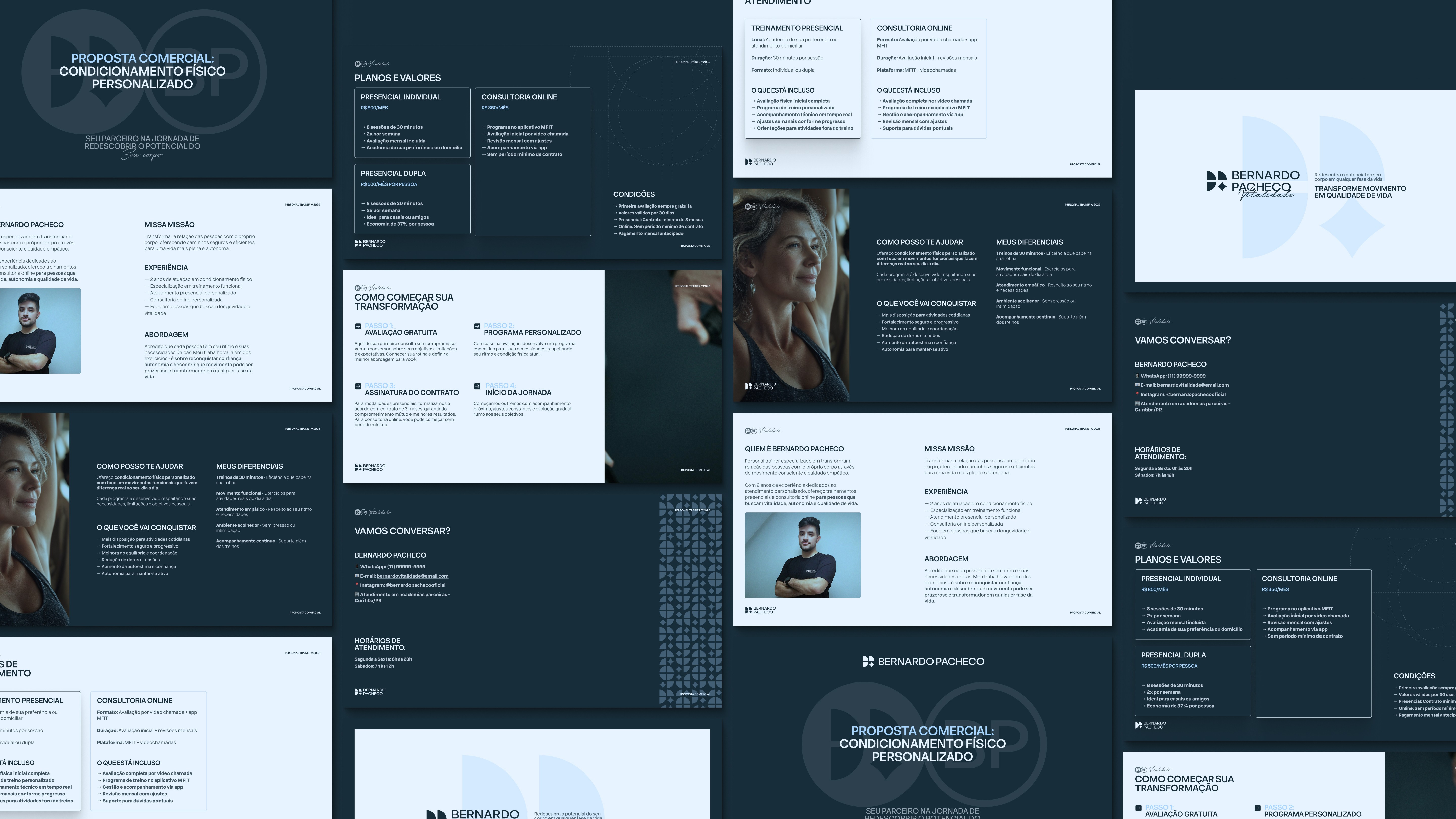 O projeto contemplou uma construção completa de marca, unindo estratégia, posicionamento e identidade visual para sustentar o crescimento de longo prazo de Bernardo Pacheco.