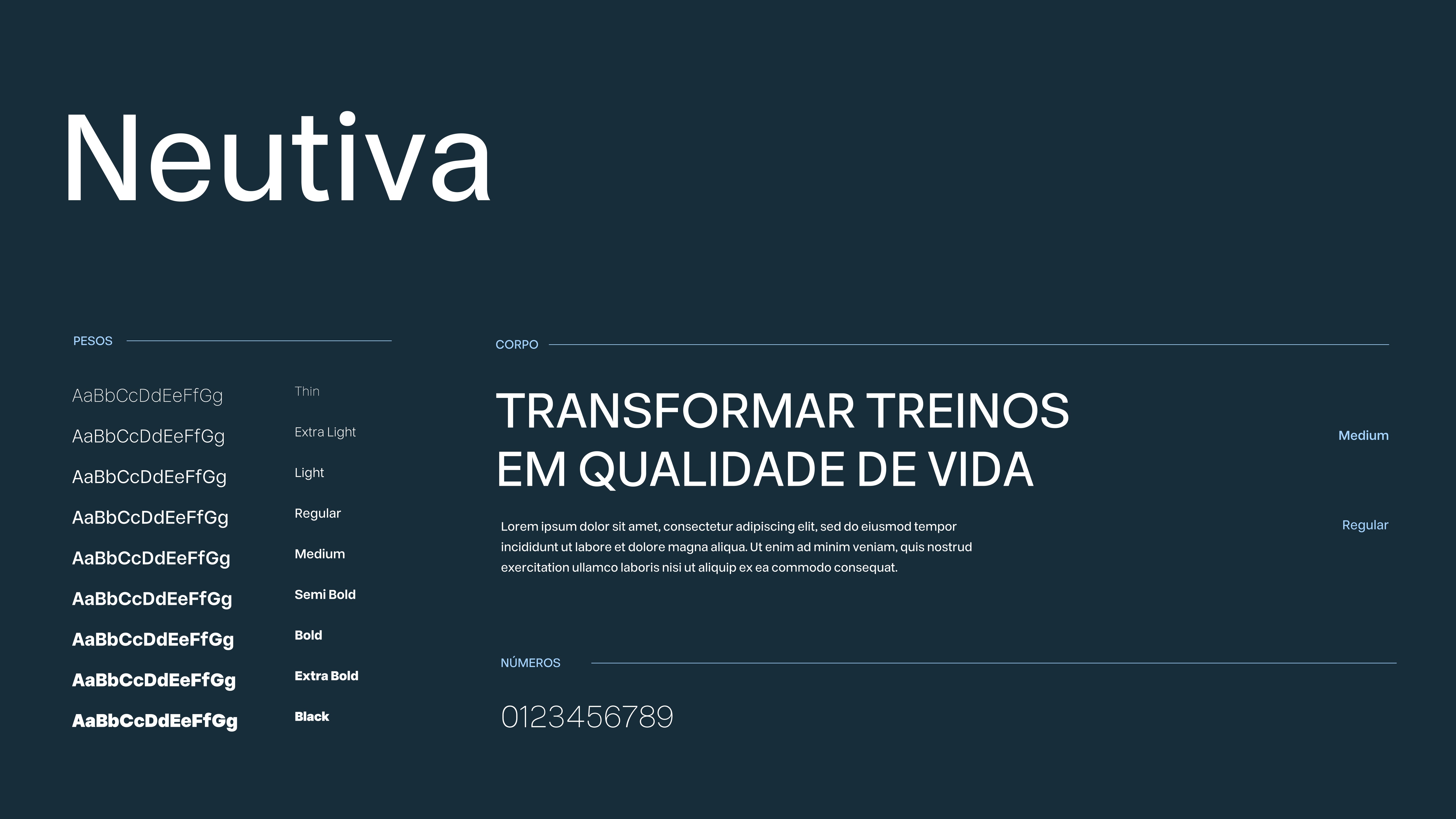 Na identidade visual, optamos por uma estética limpa, moderna e sofisticada, capaz de transmitir profissionalismo e confiança. A paleta de cores equilibra energia e acolhimento, fugindo dos excessos visuais do mercado fitness tradicional. As formas e grafismos reforçam movimento, parceria e vitalidade de maneira sutil e elegante.